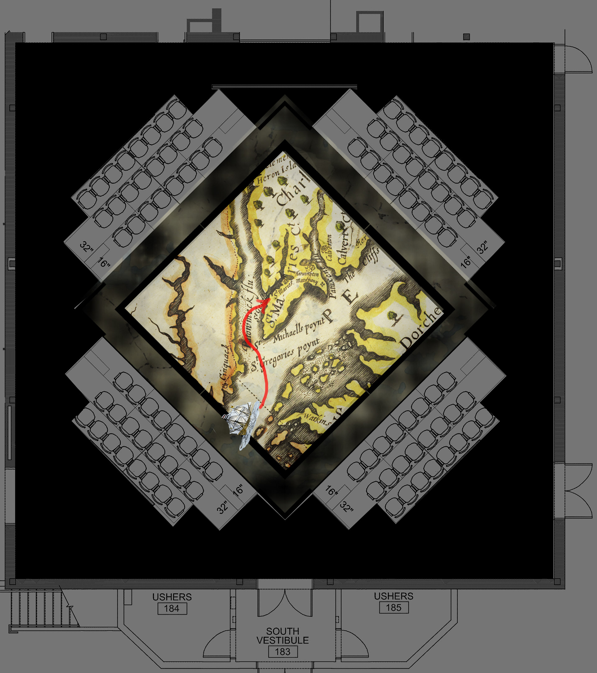 Scenic and projection design for St. Mary's College of Maryland's 2015 devised production celbrating the 175th anniversary of the college's founding.