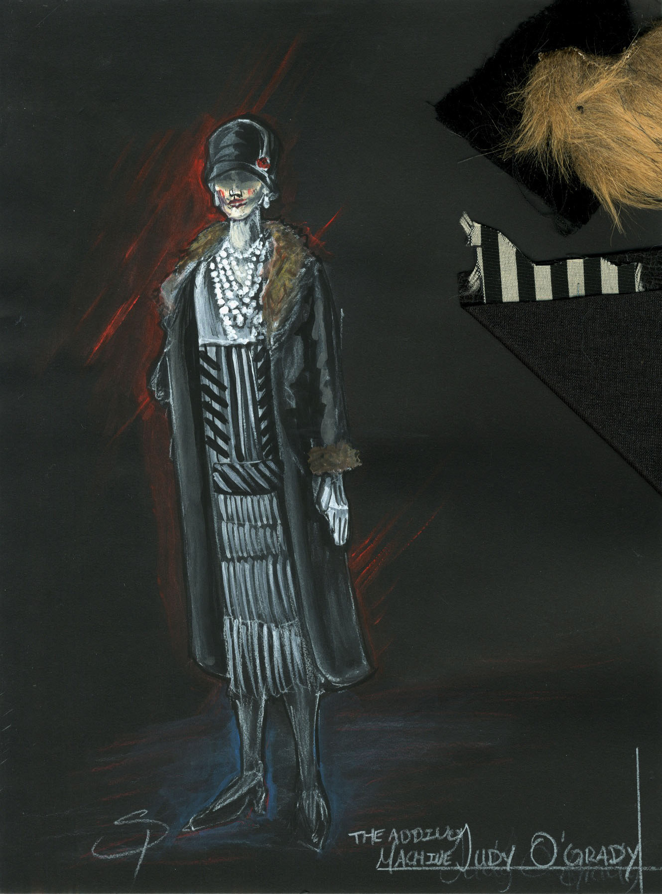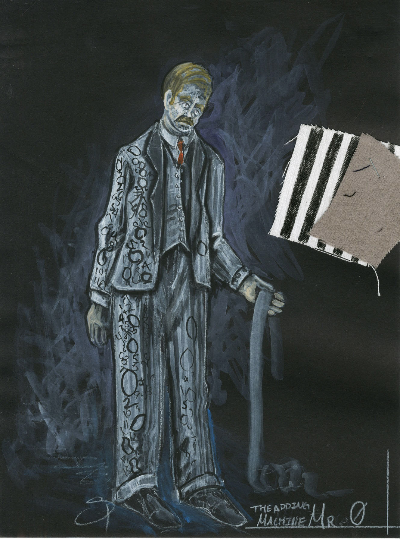 Shrdlu- For better or for worse, is Mr 0's guide through the underworld. He is one of those characters that one is never sure about. Slightly manic and highly deranged, yet likeable in his own way. I chose for him to be in his underwear because I thought it spoke to his slightly off views and communicated his deranged nature. It is also something that will simply make him stand out and look out of place while still keeping him within the look of the play.